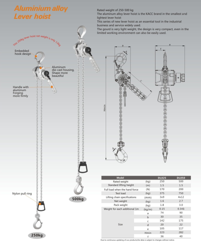 冠航RICKY-2/0.75T鋁合金手扳葫蘆